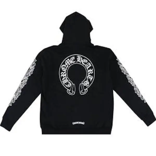 Handmade in the USA, the Horseshoe Floral Cross Sleeve Embroidered Zip-Up Hoodie stands as a collectible piece that blends craftsmanship with attitude. It’s the perfect representation of Chrome Hearts’ fusion of Los Angeles street style and luxury fashion.