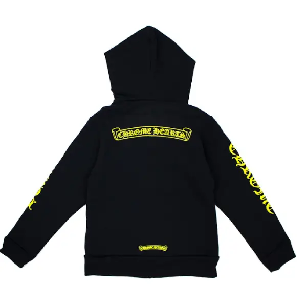 Made from 100% heavyweight cotton, the hoodie offers long-lasting comfort, warmth, and durability — ideal for everyday wear or casual outings. The black base serves as a sleek canvas for the bold yellow Chrome Hearts scroll logo, featured across the back or chest depending on the release. The design blends simplicity with statement-making detail, perfectly capturing the essence of Chrome Hearts.