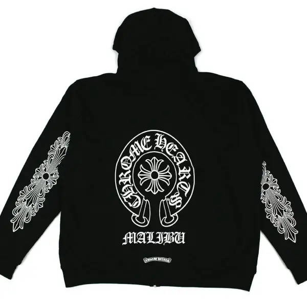 Each hoodie is handcrafted in Los Angeles, reflecting Chrome Hearts’ dedication to meticulous craftsmanship and limited-edition exclusivity. The Malibu Exclusive Horseshoe Zip-Up Hoodie is not just clothing — it’s a symbol of individuality, craftsmanship, and the brand’s deep roots in California luxury culture.