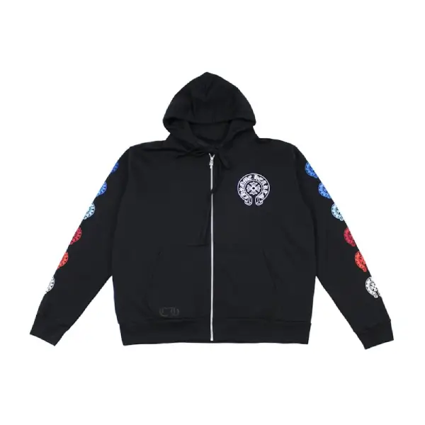 Chrome Hearts Multi Color Horseshoe Logo Zip-Up Hoodie – Black (Front Print)