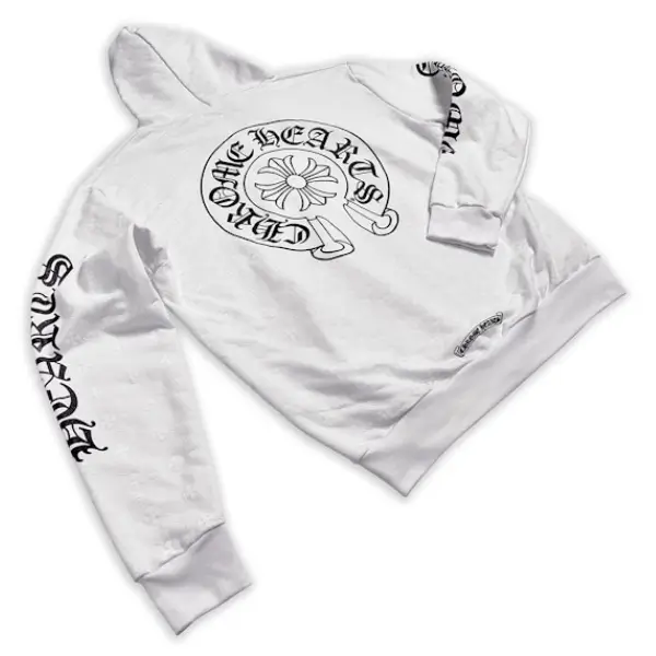 Featuring a full front zip closure, ribbed cuffs and hem, and an adjustable drawstring hood, this hoodie offers versatility and comfort for daily wear. The kangaroo-style pockets enhance practicality, while subtle Chrome Hearts branding adds a touch of authenticity and sophistication.