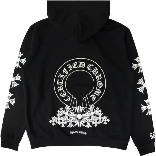Crafted from premium heavyweight cotton, this hoodie delivers both structure and comfort. The classic black colorway serves as a sleek canvas for the exclusive “Certified Lover Boy” and Chrome Hearts co-branding, featuring gothic-style lettering and cross motifs—a hallmark of Chrome Hearts’ design identity.